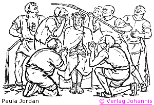 Alttestamentliche Lesung Der HERR aber sprach zu Mose und Aaron in Ägyptenland: Sagt der ganzen Gemeinde Israel: Am zehnten Tage dieses Monats nehme jeder Hausvater ein Lamm, je ein Lamm für ein Haus. Wenn aber in einem Hause für ein Lamm zu wenige sind, so nehme er's mit seinem Nachbarn, der seinem Hause am nächsten wohnt, bis es so viele sind, daß sie das Lamm aufessen können. und sollt es verwahren bis zum vierzehnten Tag des Monats. Da soll es die ganze Gemeinde Israel schlachten gegen Abend. Und sie sollen von seinem Blut nehmen und beide Pfosten an der Tür und die obere Schwelle damit bestreichen an den Häusern, in denen sie's essen. So sollt ihr's aber essen: Um eure Lenden sollt ihr gegürtet sein und eure Schuhe an euren Füßen haben und den Stab in der Hand und sollt es essen als die, die hinwegeilen; es ist des HERRN Passa. Denn ich will in derselben Nacht durch Ägyptenland gehen und alle Erstgeburt schlagen in Ägyptenland unter Mensch und Vieh und will Strafgericht halten über alle Götter der Ägypter, ich, der HERR. Dann aber soll das Blut euer Zeichen sein an den Häusern, in denen ihr seid: Wo ich das Blut sehe, will ich an euch vorübergehen, und die Plage soll euch nicht widerfahren, die das Verderben bringt, wenn ich Ägyptenland schlage. Ihr sollt diesen Tag als Gedenktag haben und sollt ihn feiern als ein Fest für den HERRN, ihr und alle eure Nachkommen, als ewige Ordnung. 2. Mose 12, 1.3.4.6.7.11-14 Lutherbibel 1984 © 1985 Deutsche Bibelgesellschaft, Stuttgart Epistel Denn ich habe von dem Herrn empfangen, was ich euch weitergegeben habe: Der Herr Jesus, in der Nacht, da er verraten ward, nahm er das Brot, dankte und brach's und sprach: Das ist mein Leib, der für euch gegeben wird; das tut zu meinem Gedächtnis. Desgleichen nahm er auch den Kelch nach dem Mahl und sprach: Dieser Kelch ist der neue Bund in meinem Blut; das tut, sooft ihr daraus trinkt, zu meinem Gedächtnis. Denn sooft ihr von diesem Brot eßt und aus dem Kelch trinkt, verkündigt ihr den Tod des Herrn, bis er kommt. 1.Kor 11, 23-26 Lutherbibel 1984 © 1985 Deutsche Bibelgesellschaft, Stuttgart Evangelium [Ein neues Gebot gebe ich euch, daß ihr euch untereinander liebt, wie ich euch geliebt habe, damit auch ihr einander liebhabt. Daran wird jedermann erkennen, daß ihr meine Jünger seid, wenn ihr Liebe untereinander habt.] Joh 13, 1-15 (34-35) Lutherbibel 1984 © 1985 Deutsche Bibelgesellschaft, Stuttgart Die Fußwaschung bedeutet ein Doppeltes: sie ist ein Abbild jener sühnekräftigen Reinigung, welche durch Christi Sterben an uns geschieht und uns vermittelt wird durch Christi Blut, für uns "vergossen zur Vergebung der Sünden". Sie ist zugleich für uns ein verpflichtendes Vorbild jener dienenden Liebe, von welcher das ganze Heilandswerk erfüllt ist: "Laß mich an andern üben, was Du an mir getan." (Spieker [5], S. 122) Abend |