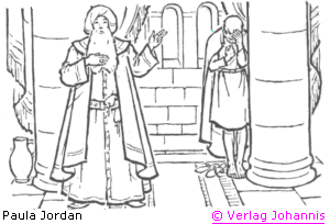 Jesus sagte {aber} zu einigen, die sich anmaßten, fromm zu sein, und verachteten die andern, dies Gleichnis: Es gingen zwei Menschen hinauf in den Tempel, um zu beten, der eine ein Pharisäer, der andere ein Zöllner. Der Pharisäer stand für sich und betete so: Ich danke dir, Gott, daß ich nicht bin wie die andern Leute, Räuber, Betrüger, Ehebrecher oder auch wie dieser Zöllner. Ich faste zweimal in der Woche und gebe den Zehnten von allem, was ich einnehme. Der Zöllner aber stand ferne, wollte auch die Augen nicht aufheben zum Himmel, sondern schlug an seine Brust und sprach: Gott, sei mir Sünder gnädig! Ich sage euch: Dieser ging gerechtfertigt hinab in sein Haus, nicht jener. Denn wer sich selbst erhöht, der wird erniedrigt werden; und wer sich selbst erniedrigt, der wird erhöht werden.