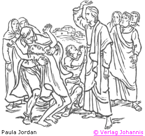 Als sie zu dem Volk kamen, trat ein Mensch zu ihm, fiel ihm zu Füßen und sprach: Herr, erbarme dich über meinen Sohn! Denn er ist mondsüchtig und hat schwer zu leiden; er fällt oft ins Feuer und oft ins Wasser; und ich habe ihn zu deinen Jüngern gebracht, und sie konnten ihm nicht helfen. Jesus aber antwortete und sprach: O du ungläubiges und verkehrtes Geschlecht, wie lange soll ich bei euch sein? Wie lange soll ich euch erdulden? Bringt ihn mir her! Und Jesus bedrohte ihn; und der böse Geist fuhr aus von ihm, und der Knabe wurde gesund zu derselben Stunde. Da traten seine Jünger zu ihm, als sie allein waren, und fragten: Warum konnten wir ihn nicht austreiben? Er aber sprach zu ihnen: Wegen eures Kleinglaubens. Denn wahrlich, ich sage euch: Wenn ihr Glauben habt wie ein Senfkorn, so könnt ihr sagen zu diesem Berge: Heb dich dorthin!, so wird er sich heben; und euch wird nichts unmöglich sein.