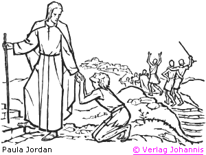 Als nun das Volk ganz über den Jordan gegangen war, sprach der HERR zu Josua: Nehmt euch aus dem Volk zwölf Männer, aus jedem Stamm einen, und gebietet ihnen: Hebt mitten aus dem Jordan zwölf Steine auf von der Stelle, wo die Füße der Priester stillstehen, und bringt sie mit euch hinüber, und legt sie in dem Lager nieder, wo ihr diese Nacht bleiben werdet. Da rief Josua die zwölf Männer, die er bestellt hatte aus Israel, aus jedem Stamm einen, und sprach zu ihnen: Geht hinüber vor der Lade des HERRN, eures Gottes, mitten in den Jordan, und ein jeder hebe einen Stein auf seine Schulter, nach der Zahl der Stämme Israels, damit sie ein Zeichen seien unter euch. Wenn eure Kinder später einmal fragen: Was bedeuten euch diese Steine?, so sollt ihr ihnen sagen: Weil das Wasser des Jordans weggeflossen ist vor der Lade des Bundes des HERRN, als sie durch den Jordan ging, sollen diese Steine für Israel ein ewiges Andenken sein.